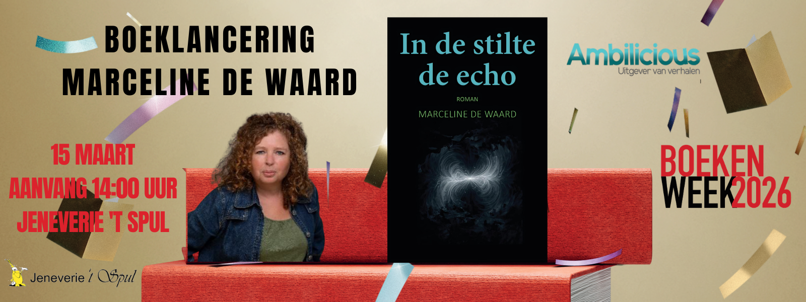 'In de stilte de echo' Wat als je afkomst voor je wordt verzwegen? Noortje voelt al vroeg dat er iets niet klopt. Er wordt gezwegen, verdraaid, weggedrukt. Wanneer ze van huis wegloopt, laat ze niet alleen haar ouders achter, maar ook een waarheid die niemand onder woorden wil brengen. In de jeugdzorg leert ze zich staande te houden, ondertussen blijft een onbestemde onrust haar achtervolgen. Cleo, de zus van Noortjes moeder, draagt het antwoord dat Noortje nodig heeft. Ze zoekt naar een manier om die waarheid te delen, hierbij raakt ze verstrikt in schuld en verantwoordelijkheid. Langzaam raken de levens van beide vrouwen met elkaar verweven. Een verzwegen familiegeschiedenis komt aan het licht, waarin pijn ongemerkt van moeder op dochter wordt doorgegeven. In de stilte de echo is een roman over afkomst, zwijgen en de gevolgen daarvan. Marceline de Waard schrijft over vrouwenlevens en het ontdekken van eigen kracht. 'In de stilte de echo' is haar vierde roman. PROGRAMMA - Ontvangst met een drankje - De literair agent, de uitgever en de boekverkoper aan het woord - Marceline over het schrijven van In de stilte de echo - Uitreiking eerste exemplaar - Signeersessie en napraten onder genot van een drankje en hapje